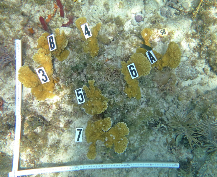 In 2019, the research team tracked the survival rates of four genets across three actively restored reefs in the upper Florida Keys. (Genets refer to a genetically unique colony or a group of colonies originating from a single reproductive event.)